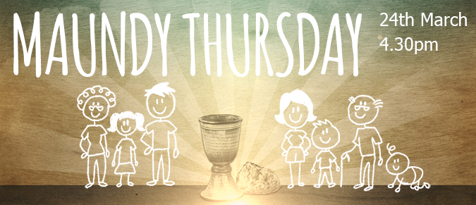 | 4.30pm - 6.30pm | Maundy Meal | Another new idea for 2016. We will all meet together in the church hall to share in a Passover meal, just like Jesus and the disciples. A 'usual' tea-time meal will also be served (2 courses, main and pudding). Activities, readings and prayers will accompany the meal, and we will share Communion, just like Jesus did. This will be suitable for ALL ages, including the youngest children. We're aiming to make the meal more family-friendly and accessible. Let us know what you think! |