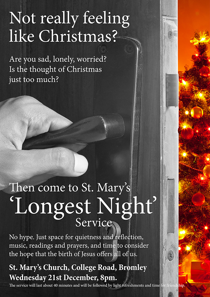 If you are not looking forward to Christmas, St. Mary’s Church would like to invite you to a special ‘Longest Night’ service on Wednesday 21st December at 8pm.
