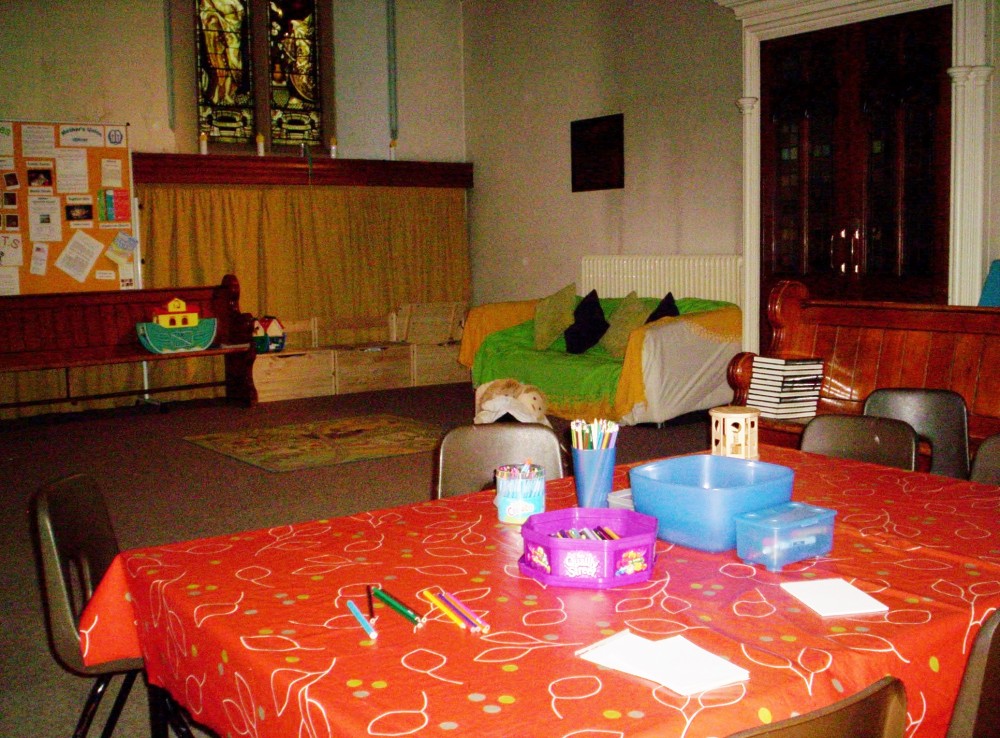 We have set up this area to provide for the needs of families with babies and toddlers. You will find baby changing facilities in the toilet through the double doors. Please feel free to feed your baby whenever you need to throughout the service; it’s one of the reasons we have put a sofa in here! Toddlers and babies are encouraged to make use of the space in here and you’ll find age-appropriate biblical toys in the toy boxes as well as jigsaw puzzles for the older ones. There are plenty of bible story books for you to read to your child in the bookcase by the entrance to this area. We have a buggy park for pushchairs and prams and a secure gate to the area so that you can relax and not worry that your little one will make a dash/crawl towards the altar!